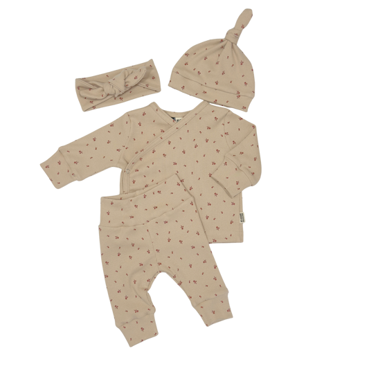 Baby Newborn Broekje Rib Beige met bloemetjes