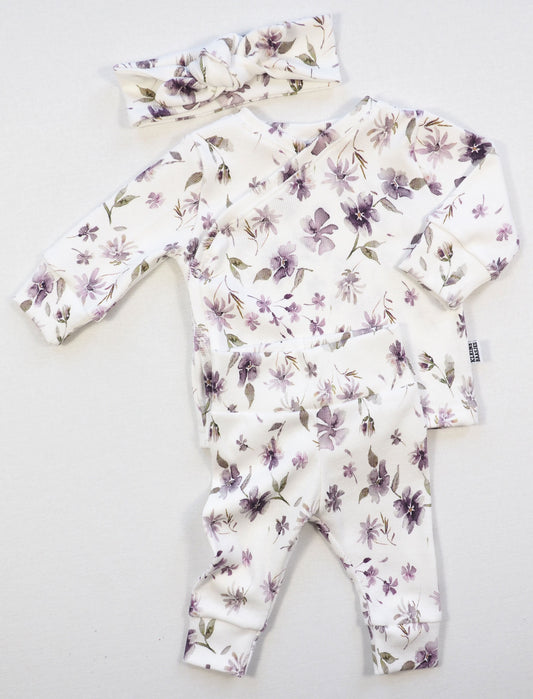 Baby Newborn Broekje Rib Paarse Bloemen Floral Daisies