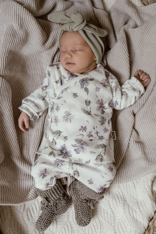 Baby Overslag Vestje Rib Paarse Bloemen Floral Daisies