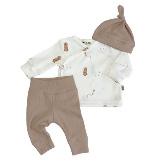 Baby Overslag Vestje Rib Beige met Bloemetjes