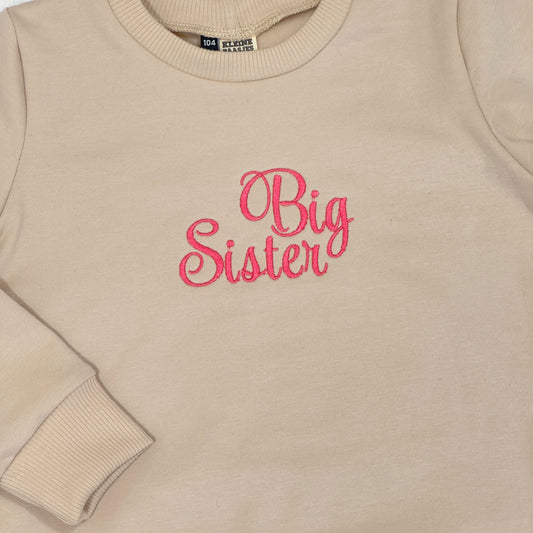 Geborduurde Baby en Kids Sweater Beige Big Sister