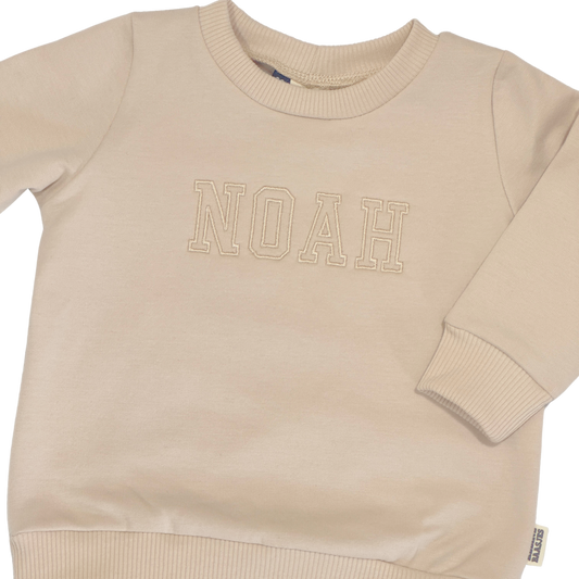 Geborduurde Baby en Kids Sweater Beige Met Naam College