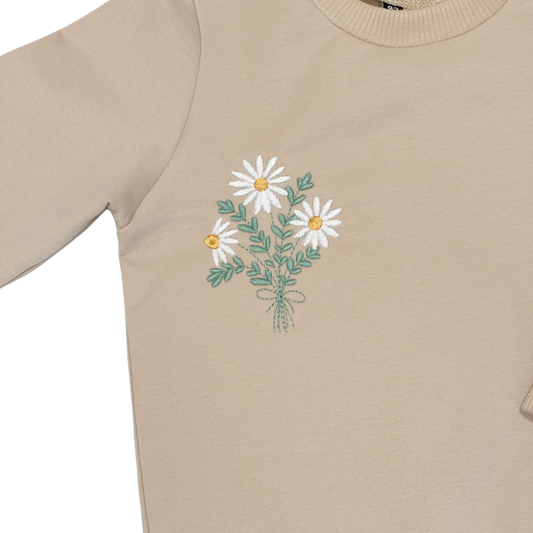 Geborduurde Baby en Kids Sweater Beige Madeliefjes
