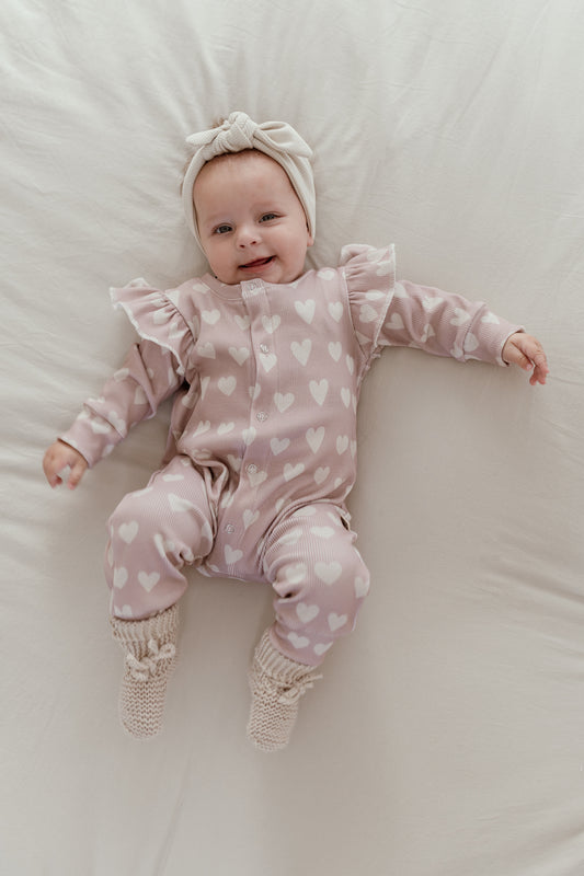 Baby Jumpsuit Rib Hartjes Roze met Ruffles