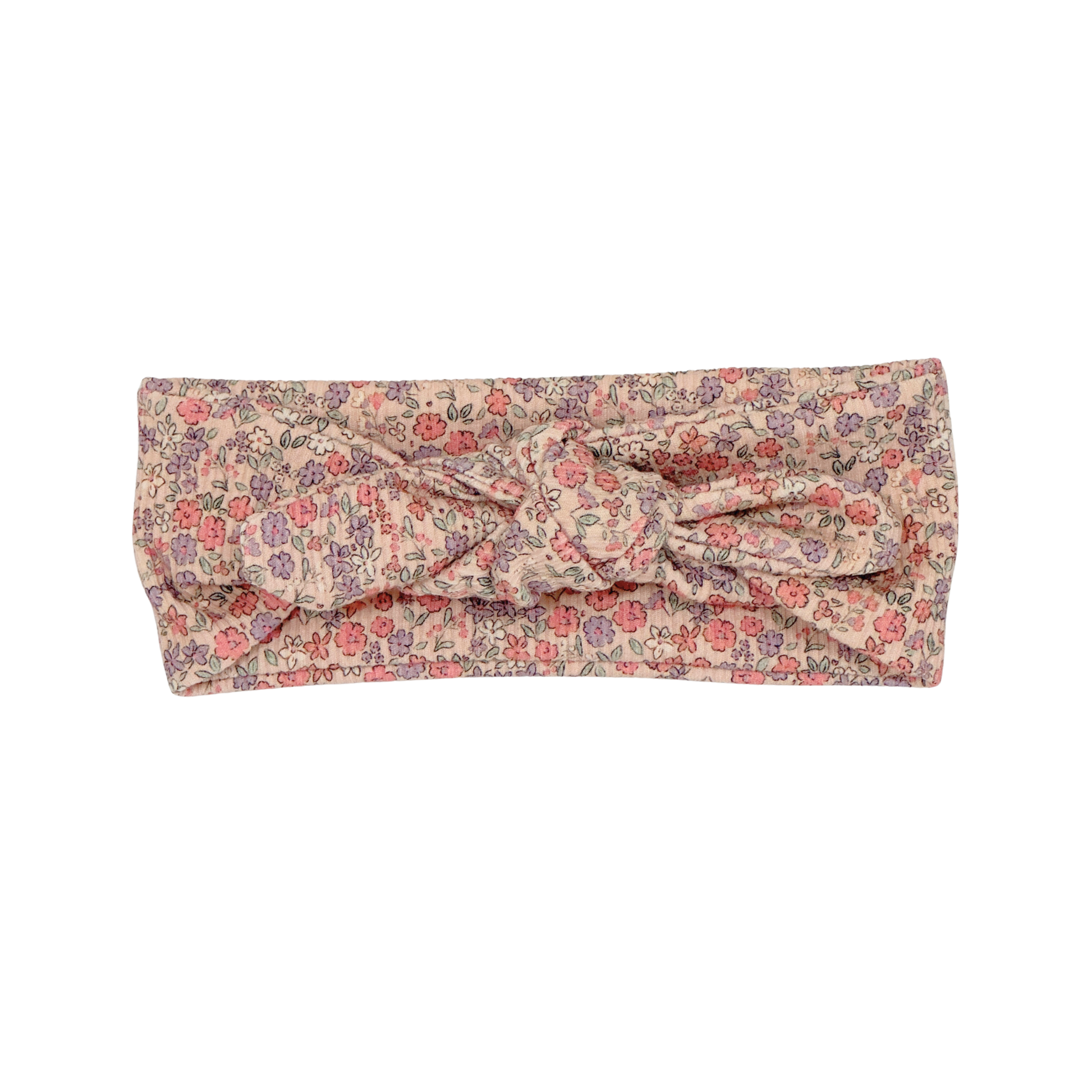 Geknoopte haarband met een mooie mini bloemen print in de kleuren klei roze, zalm, lila en groen. Draag deze haarband in combinatie met een jumpsuit, jurkje of broekje van dezelfde of bijpassende print/kleur om de look van je kleintje helemaal af te maken!