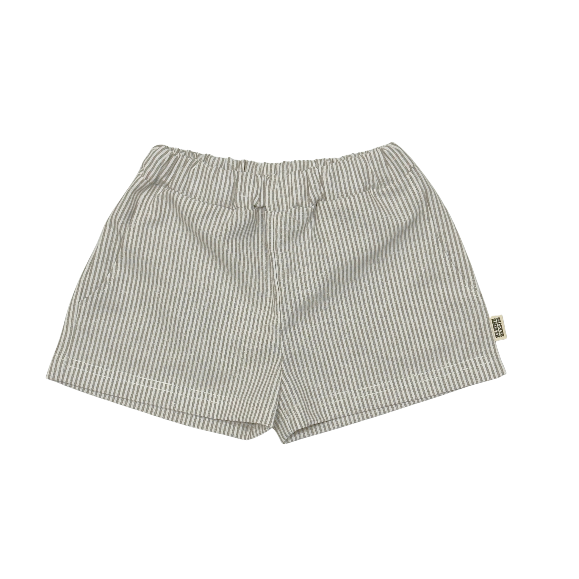 Deze linnen shorts heeft smalle streepjes in de lengte en de kleur creme en taupe. Door de kleur en de streepjes is deze broek bijna met alles te combineren.
