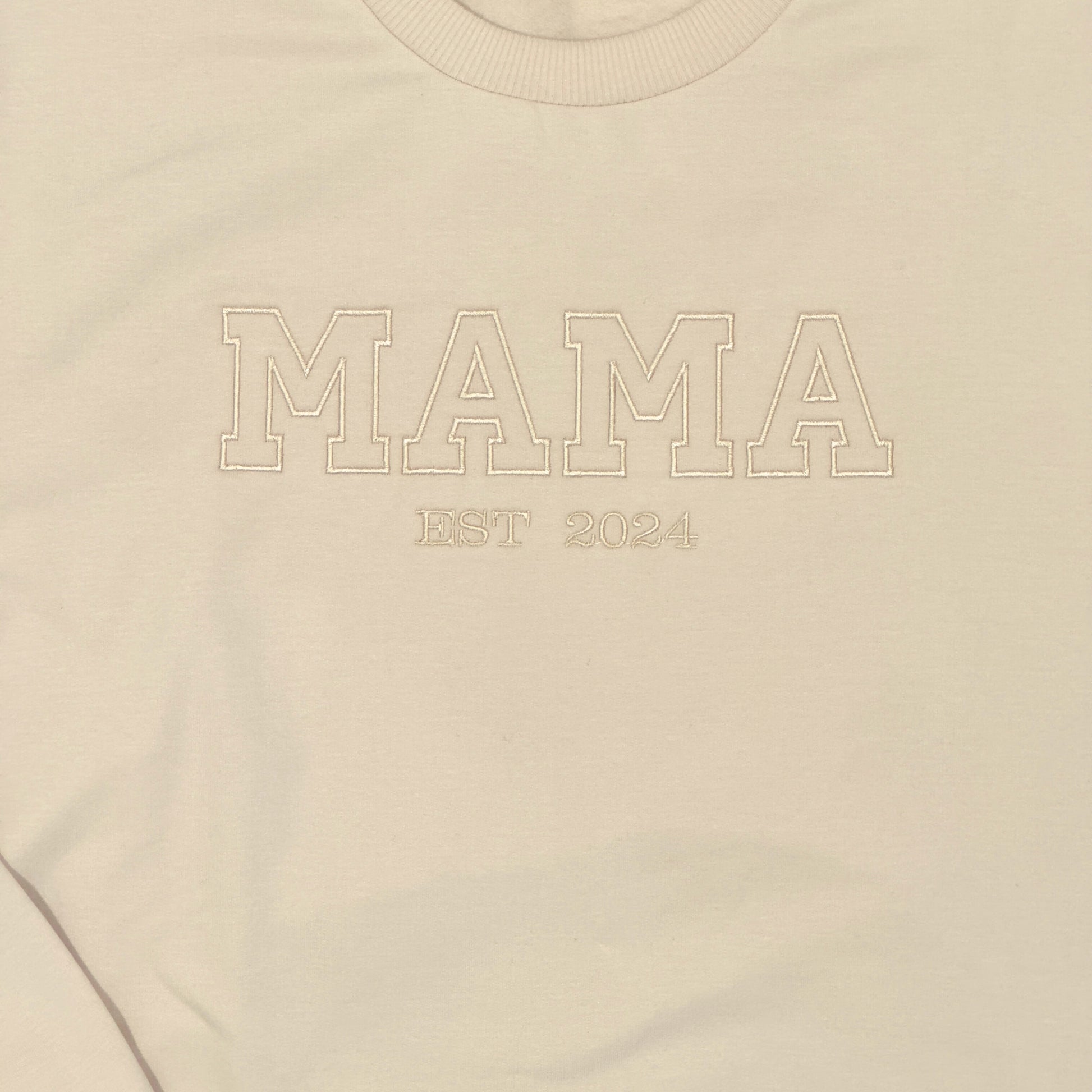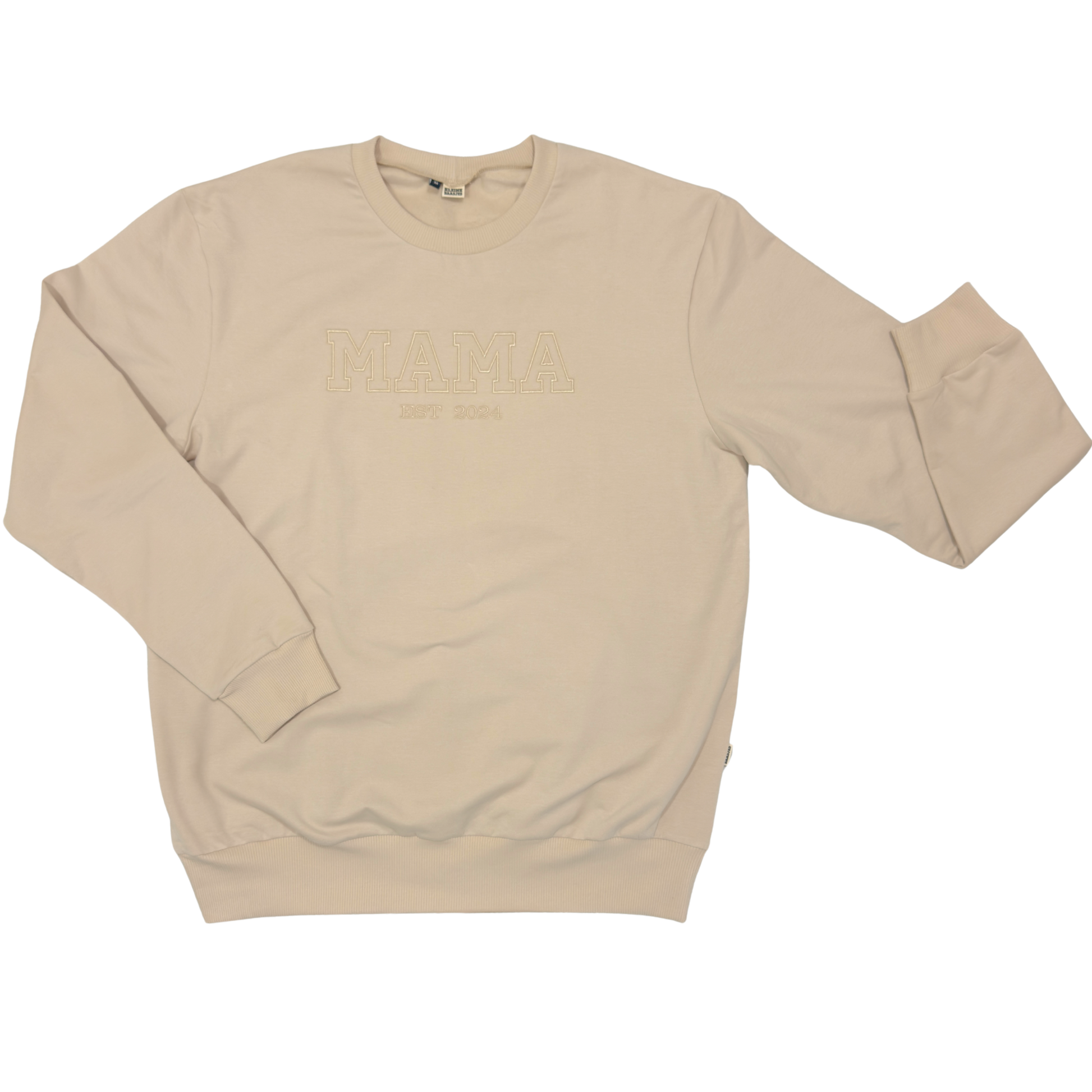 Geborduurde mama Sweater Beige college stijl - MAMA met jaartal