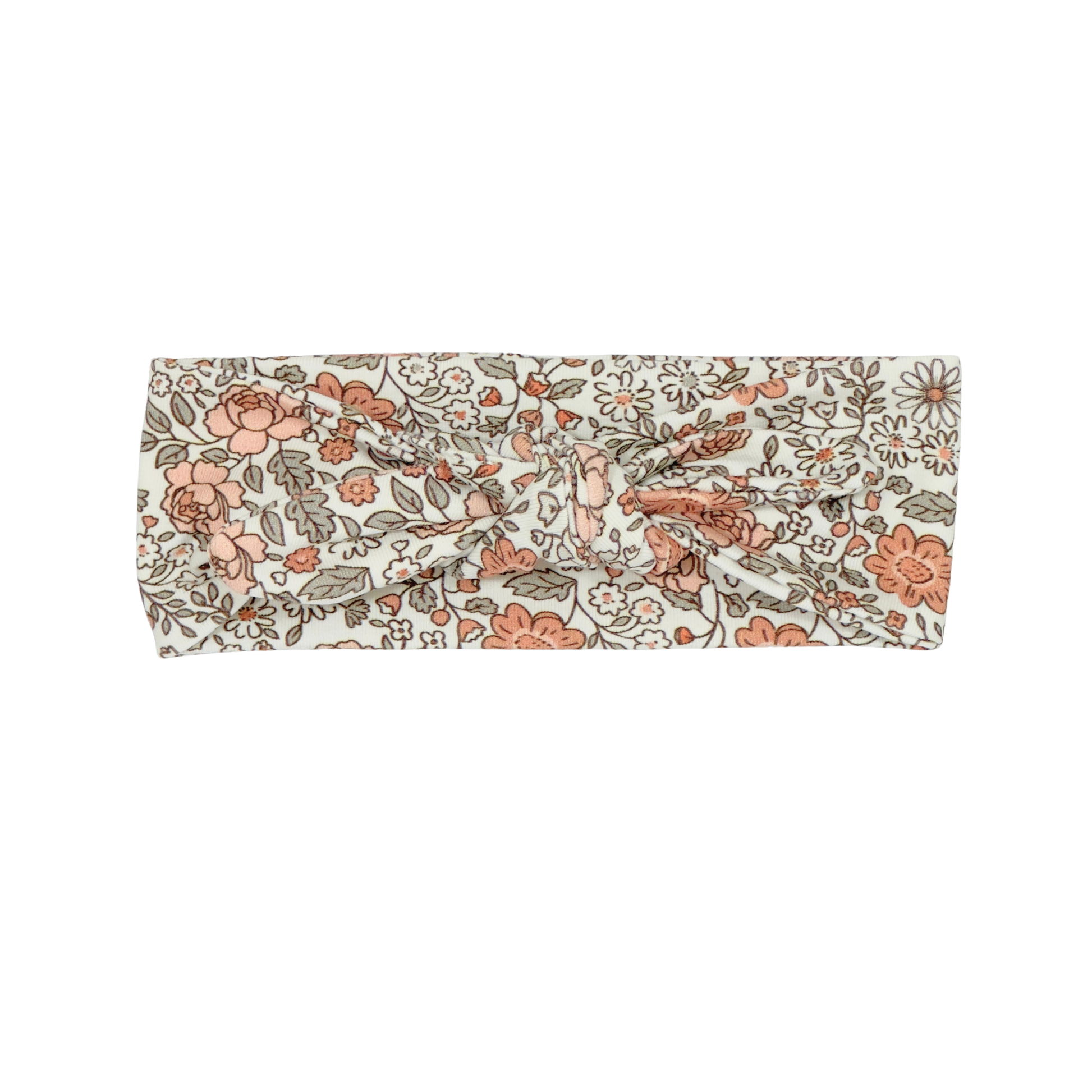 Geknoopte haarband met een mooie bloemen madelief print in de kleuren creme, camel en groen. Draag deze haarband in combinatie met een jumpsuit, jurkje of broekje van dezelfde of bijpassende print/kleur om de look van je kleintje helemaal af te maken!